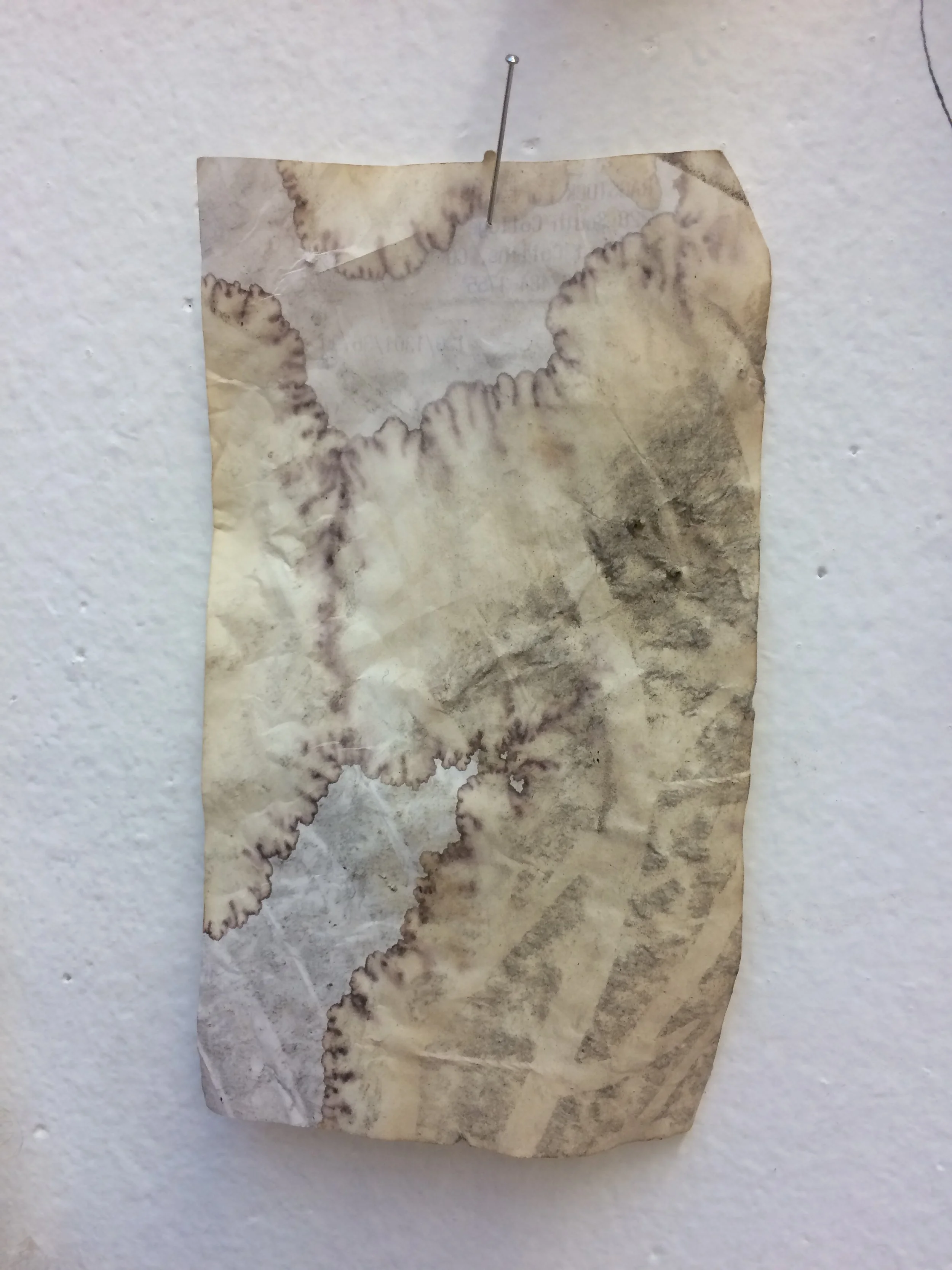 From left to right: parchment paper, sand paper, roofing paper. All include wire & thread.